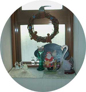 窓辺の小物もクリスマス風に、しました。